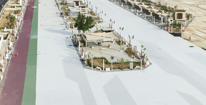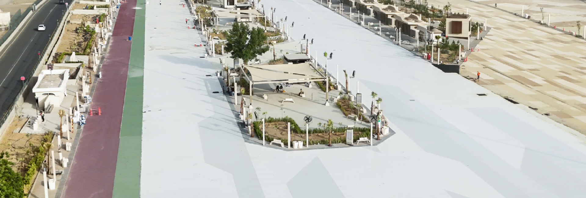 “Jazeera Sportex” is a solvent-free rubber granule coating system, engineered with surface cooling technology for asphalt. It was applied to pedestrian walkways and high-traffic areas within the Holy Sites, due to its unique properties such as resistance to heat absorption from sunlight and shock absorption. These features help cool the ground surfaces and provide flexible, comfortable flooring, thereby enhancing pilgrims’ comfort during Hajj rituals.